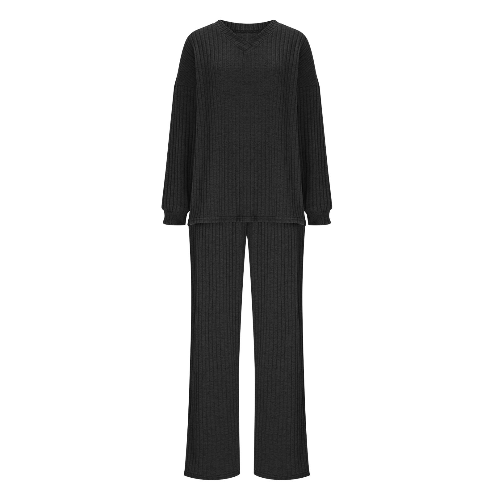 Comfortable and casual two-piece set featuring a T-shirt and pants. Designed with a solid color palette and