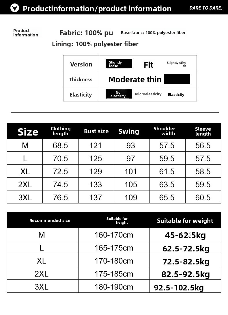 Sizes: M, L, XL, XXL, XXXL.