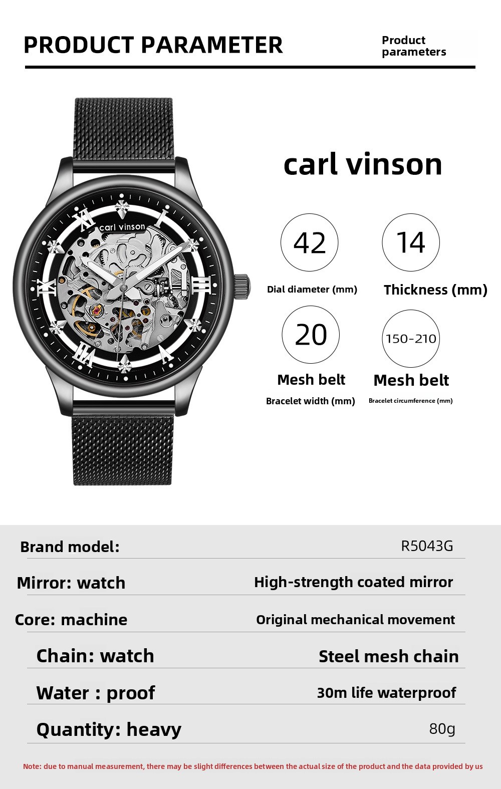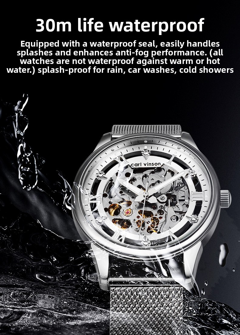 Water Resistance: 30-meter waterproof capability suitable for daily wear and light water exposure.