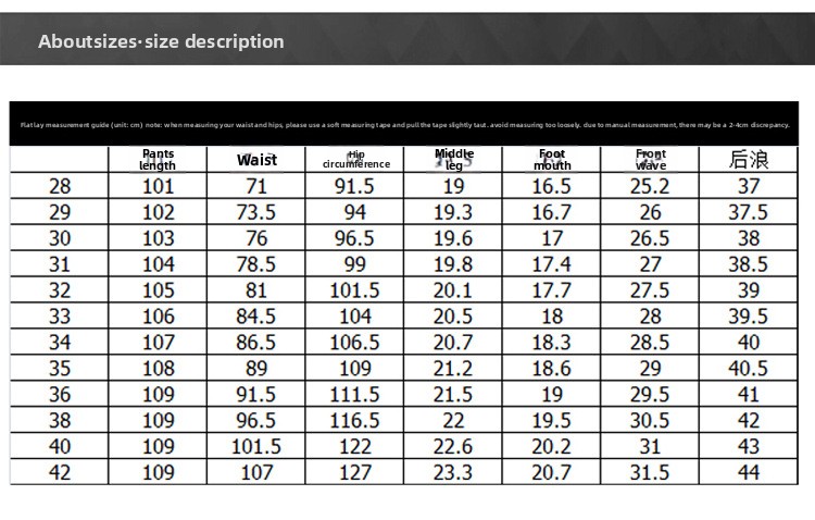 Sizes: 28, 29, 30, 31, 32, 33, 34, 35, 36, 38, 40