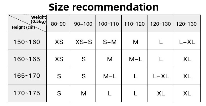 Size: XS, S, M, L, XL.
